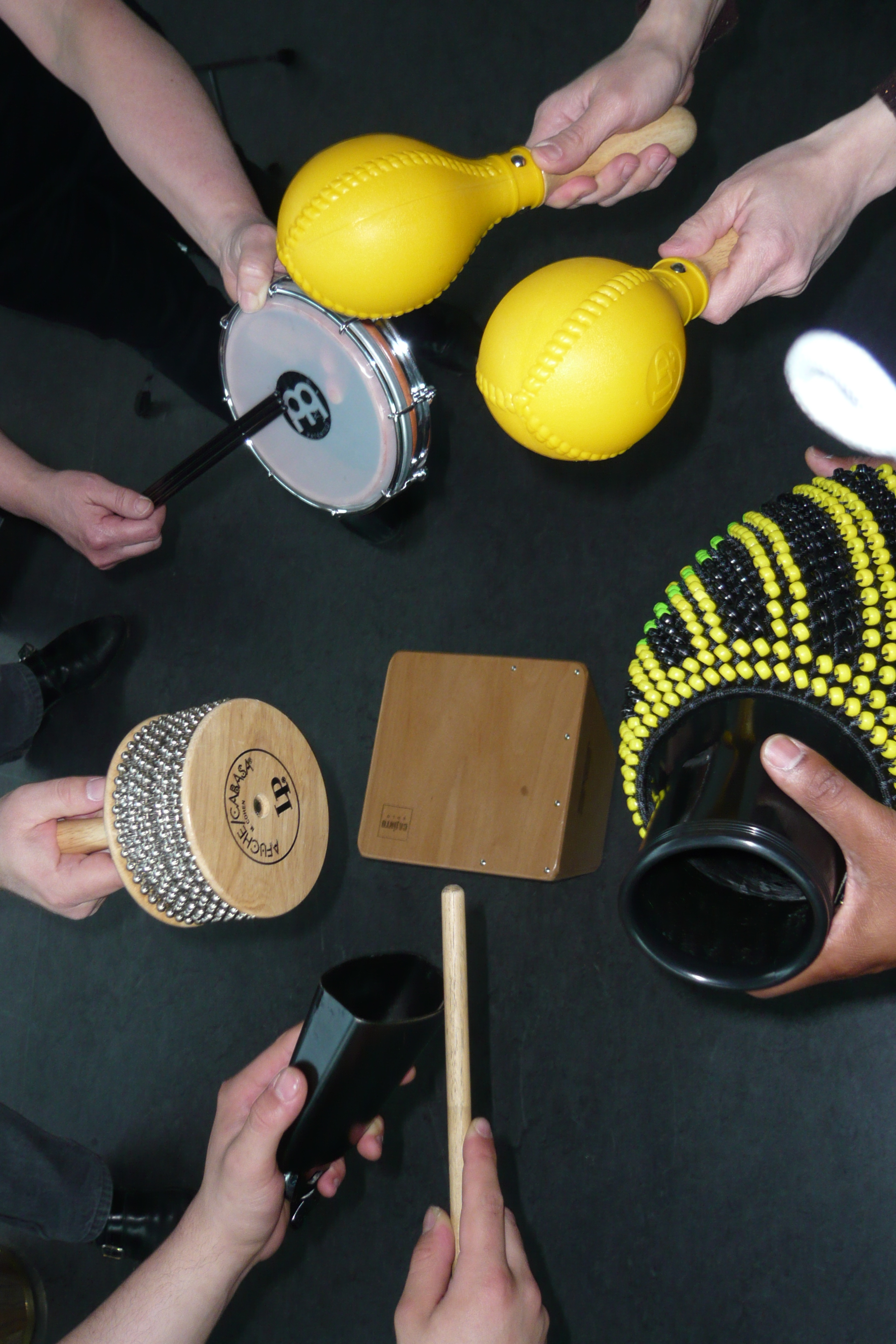 Lors des séances, nous utilisons des instruments rythmiques et mélodiques simples: tambourins, claves, xylophones, etc. qui compose un « instrumentarium ».